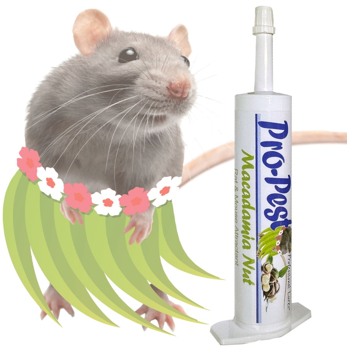 Pro-Pest Macadamia Nut for Rats & Mice is a blend of food-grade ingredients with an aroma of macadamia nuts and other secret tropical ingredients that rodents scurry to find. Pro-Pest is a non-toxic rodent-loving food based attractant for use with rodent devices such as snap traps and glue boards. Use in residential & commercial accounts. Use with confidence in sensitive accounts such as daycares, hospitals, nursing homes, schools. Our 32cc syringe makes it clean and easy to apply lure and fits most industry bait guns. Does not contain peanuts. To use, simply place 1/2 – 1 gram of Pro-Pest Rat & Mouse Lure on the trap trigger of a snap trap, center of a glue board, inside a multi-catch trap or behind the trip pan inside a live animal trap.
